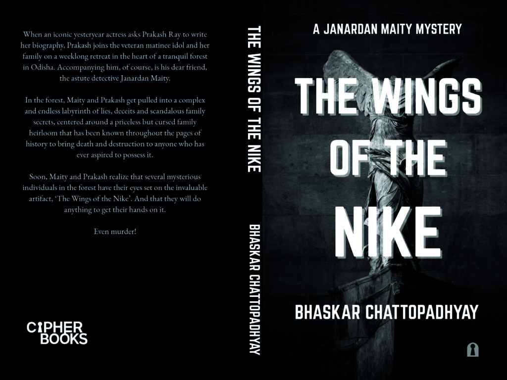 Recently, Bhaskar Chattopadhyay launched his own imprint titled Cipher Books (see logo). It is registered in Canada. The first book to be published under this imprint is The Wings of the Nike (see cover attached), which happens to be the sixth book in the popular Janardan Maity mystery series. So far, he had been published by traditional publishers such as Penguin Random House India, Harper Collins India, Hachette India, Westland Books etc. But the idea of creating his own imprint had been with him for several years now except that he couldn’t get around to doing it. Now that he has, the plan is simple. Ambitious, but doable. In fact, the launch of his first book has proven that he with the first book that has been published in this new model he has “already earned significantly more than what [he] had earned in all the previous books combined through traditional publishing”.