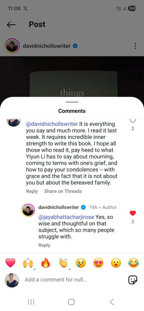Interestingly enough, David Nicholls wrote about it on his Instagram account too. I replied to him. Not only he, but Helen Fielding too ( author of Bridget Jones Diary) liked my response.